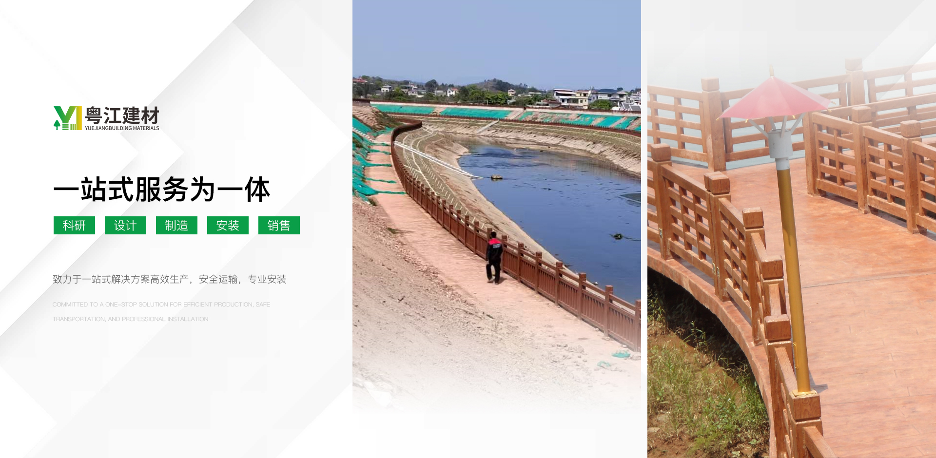 江門市粵江建材有限公司隸屬于中山市鴻文園林景觀工程有限公司(前身為成立于2010年——中山市三圣園林景觀工程有限公司,2021年更名為中山市鴻文園林景觀工程有限公司)旗下子公司,成立于2022年,公司坐落于粵港澳大灣區(qū)重要節(jié)點(diǎn)城市—鶴山市,占地10余畝,現(xiàn)有員工50余人。是一家專業(yè)從事園林護(hù)欄設(shè)計(jì)及施工一體化的園林景觀工程公司,公司擁有仿木、仿石、仿竹、鑄造石四大系列產(chǎn)品,主營產(chǎn)品有:河道護(hù)欄、橋梁護(hù)欄、仿木護(hù)欄、仿漢白玉護(hù)欄、仿石護(hù)欄、鑄造石護(hù)欄、仿竹護(hù)欄、仿木護(hù)岸樁、仿木花架、仿木花箱、仿木地板、組合護(hù)欄、棧橋等景觀產(chǎn)品。產(chǎn)品涉及水利建設(shè)、景區(qū)建設(shè)、城鎮(zhèn)園林建設(shè)、小區(qū)美化建設(shè)、新農(nóng)村改造等景觀裝飾。